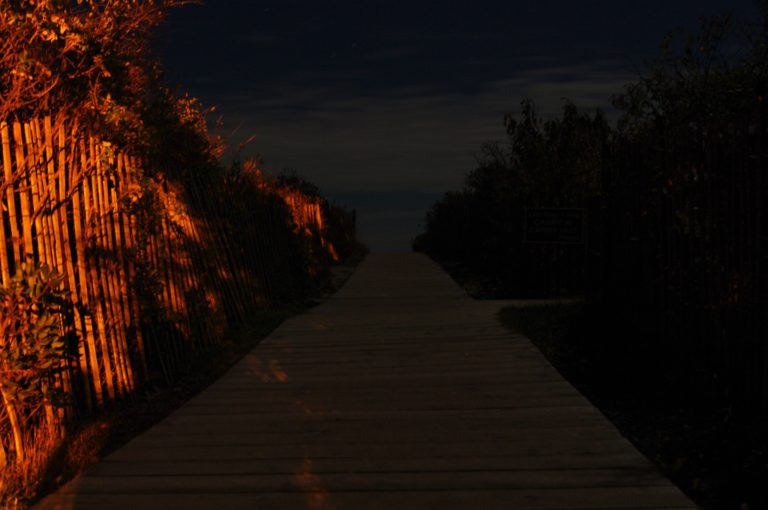I turn my car into an empty beach parking lot, shutting the lights off as I pull in so they don’t shine on the water. I have the beach to myself tonight–a much more common occurrence on a mid-September night than in the height of summer. The tide is starting to go out as I get my waders, rod, and tackle bag out of the car. I timed it right this time—there is no sense wading out into a rising tide unless I feel like swimming back to shore. I can hear the waves breaking from the parking lot—it’s a higher pitched sound, not the low boom of large waves—it sounds like a calm night. There’s about a quarter moon so I should have some light, but it won’t be too bright. It’s easy to see what you’re doing on a full moon night—but the darker it is, the more luck I’ve had.